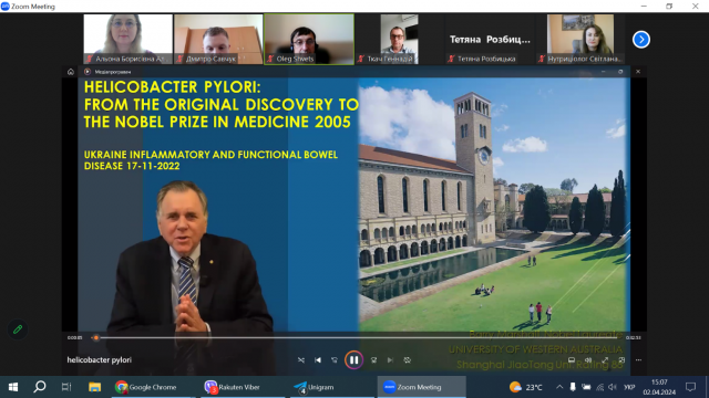 На початку квітня на факультеті харчових технологій та управління якістю продукції АПК для здобувачів ОС «Бакалавр» спеціальності 229 «Громадське здоров’я» та ОС «Магістр» освітньо-наукової програми «Нутриціологія» відбувся науково-практичний вебінар «Як отримати Нобелівську премію?», під час якого викладачі та студенти прослухали і обговорили доповідь Нобелівського лауреата професора Баррі Маршалла. Професор Маршалл розповів, як вони разом із Робіном Уорреном відкрили Helicobacter pylori та довели її роль у виникненні гастриту, пептичної виразки та раку шлунку. Ці науковці буквально «переписали» підручники з посиланням на те, що викликає гастрит і виразку шлунку.
