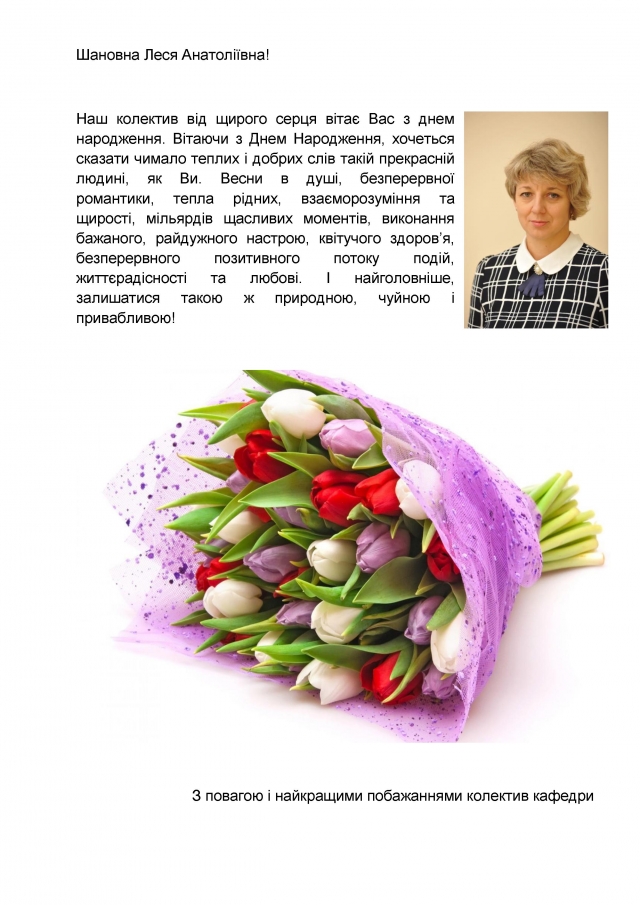 Кафедра вітає з Днем народження Гарбар Лесю Анатоліївну!