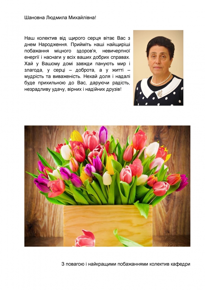 Кафедра вітає з Днем народження Єрмакову Людмилу Михайлівну!