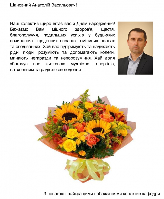 Кафедра вітає з Днем народження Юника Анатолія Васильовича!