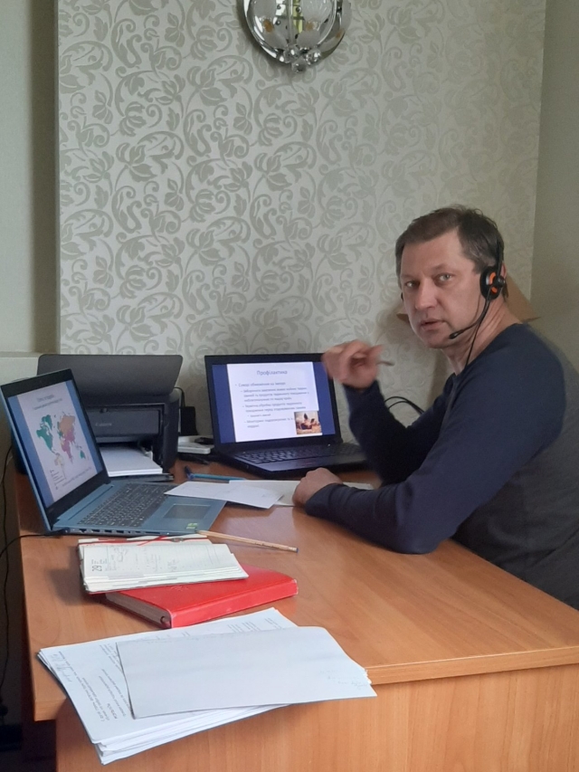Не дивлячись на карантин на кафедрі епізоотології, мікробіології і вірусології навчальний процес знаходиться в повному розпалі. При цьому студенти освітніх ступенів «Бакалавр» та «Магістр» виконують самостійні завдання, активно спілкуються з викладачами використовуючи різні платформи та месенджери, прослуховують лекції. Але ми не забуваємо і про наших PhD – студентів (аспірантів) 1-го року навчання з освітньої наукової програми «Заразні хвороби тварин», з якими професор Віталій Недосєков проводить заняття з дисципліни «Епізоотологія та інфекційні хвороби тварин» використовуючи платформи Skype та Zoom. Наразі нам довелось побувати присутніми на занятті, на якому розглядали тему «Системи нагляду щодо контролю інфекційних хвороб».