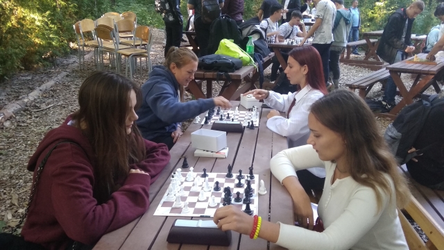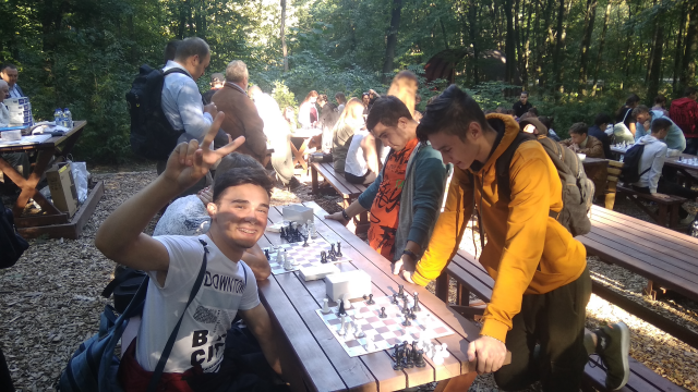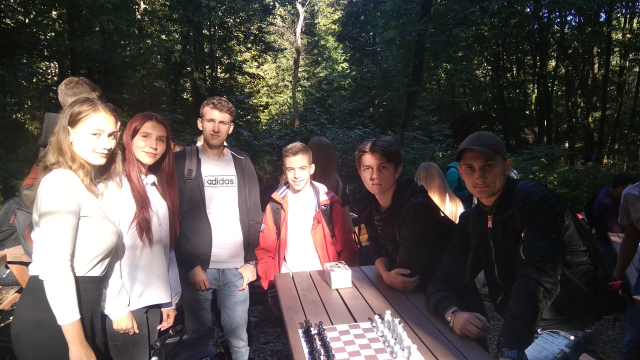 Вересень – дуже насичений місяць у студентському житті! Чи не щодня в НУБіП України проводились творчі конкурси, спортивні змагання, майстер-класи, зустрічі з цікавими людьми: науковцями, літераторами, політиками тощо. У цей насичений подіями період, викладачі кафедри англійської філології іноді проводили заняття на свіжому повітрі в екологічних класах ботанічного саду НУБіП України. Так, для студентів другого курсу спеціальності «Облік і оподаткування» економічного факультету було проведено заняття у форматі Speaking Club, а студенти першого курсу спеціальності «Професійна освіта» гуманітарно-педагогічного факультету та спеціальності «Інженерія програмного забезпечення» факультету інформаційних технологій брали участь у шаховому турнірі і розвивали навички діалогічного мовлення англійською.