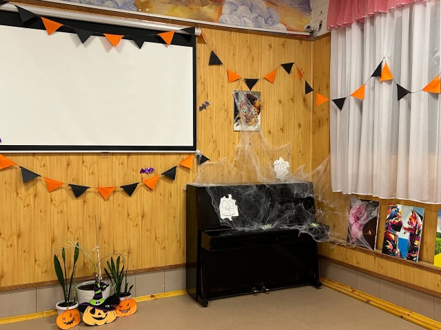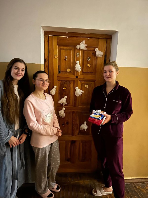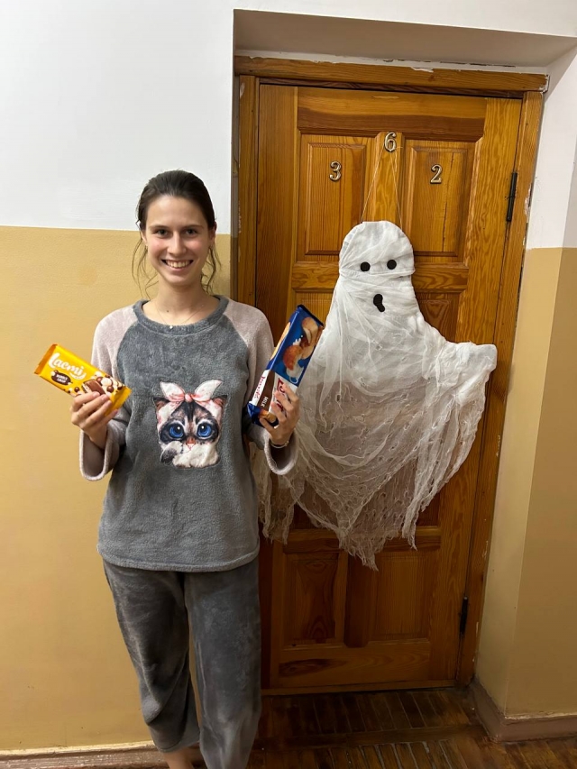 Хол гуртожитка та зала відпочинку були прикрашені в найкращих традиціях Хеллоуїна: мерехтливі гарбузи, моторошні павуки, чорні коти і різноманітні гірлянди, що створювали загадкову і трохи лячну атмосферу. Студенти з захопленням допомагали прикрашати спільні простори, що додало святу ще більше родзинки та єдності. Така атмосферність дозволила кожному зануритись у чарівний світ Хеллоуїна, де магія і містика стали частиною повсякденної реальності.