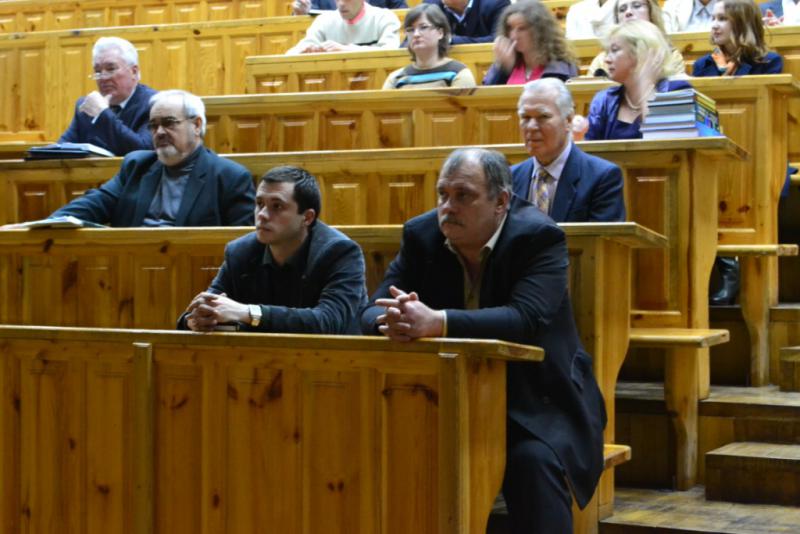 Згодом після вручення посвідчень Микола Іванович запросив до слова першого доповідача – Мельника О.П., завідувача кафедри анатомії тварин імені академіка В.Г. Касьяненка. Олег Петрович окреслив навчальну та наукову діяльність кафедри, показники підготовки наукових кадрів, можливості наукової лабораторії полімерного бальзамування стосовно виготовлення анатомічних препаратів для потреб навчальних та наукових установ медичного та загальнобіологічного профілів. Детально Мельник О.П. зупинився і на питаннях, які турбують кафедру, та проблемах які потребують вирішення.