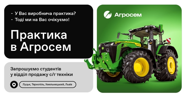 Ми запрошуємо студентів старших курсів на проходження практики в напрямку регіональних підрозділів з продажів сільськогосподарської техніки (Луцьк, Тернопіль, Хмельницький, Львів).