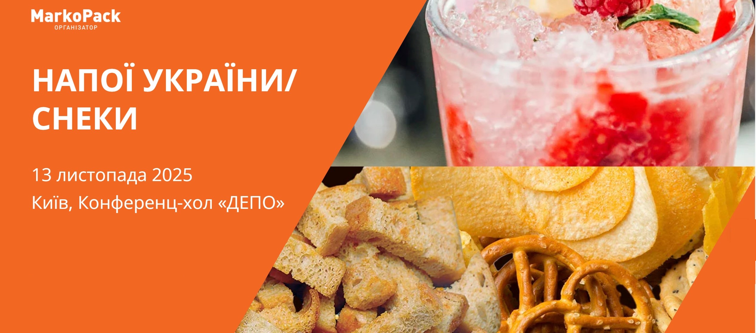 Запрошуємо вас взяти участь у конференції «Напої України. Снеки», яка відбудеться 13 листопада 2025 р. у конференц-холі «ДЕПО» (Київ, вул. Антоновича, 52).
