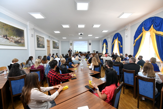 На конференцію трудового колективу завітали ректор університету, академік Станіслав Ніколаєнко, учений секретар Оксана Барановська та начальник відділу кадрів Микола Михайліченко.