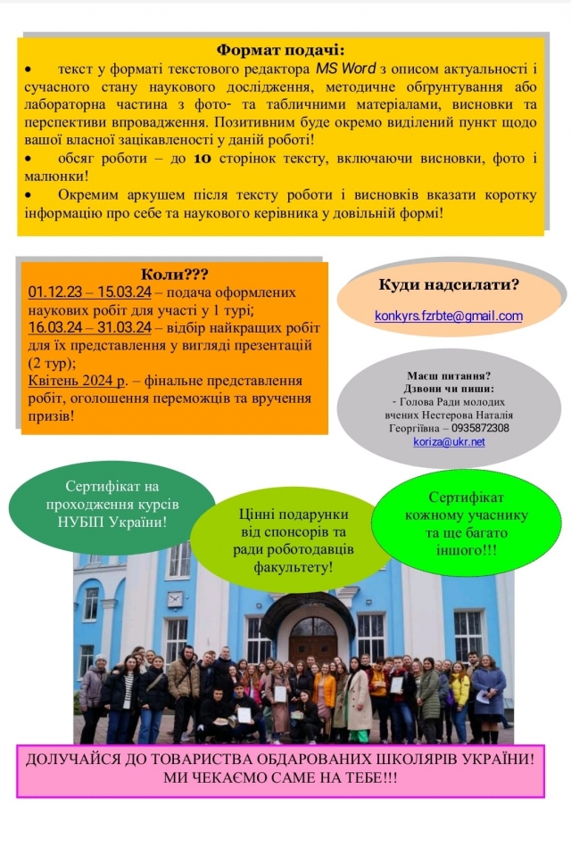 Конкурс для школярів 9-11 класів "Юний дослідник"!