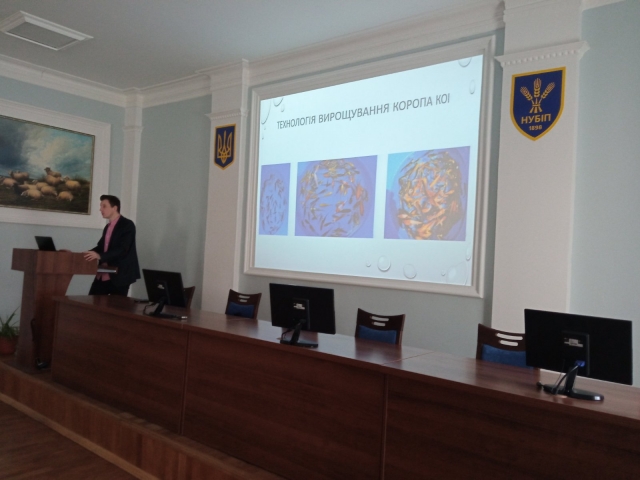 Гостьова лекція Олександра Лисака «Короп коі як перспективний приклад ведення альтернативного рибництва в Україні» неабияк зацікавила студентів, бо коропи кої є представниками колекційних видів риб й представляють декоративну аквакультуру, яка ще зовсім не оцінена в Україні.