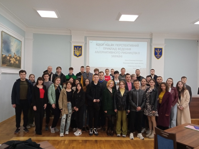 25 квітня 2023 року студенти ОС «Бакалавр», «Магістр», аспіранти та викладачі спеціальності 207 «Водні біоресурси та аквакультура» факультету тваринництва та водних біоресурсів радо зустрічали свого успішного випускника Олександра Лисака. Олександр – висококваліфікований знавець коропових риб й спеціалізується на декоративній формі коропа – японських кої, якими зацікавився ще з студентської лави. Його досвід – це як напрям студентам бакалаврам для подальшої спеціалізації, магістрам – корисна інформація для поглиблення знань з декоративної аквакультури, а аспірантам та викладачам – цікава інформація з адаптації спеціалістів рибогосподарської галузі у непростий час військової агресії росії проти нашої рідної країни. Бо ми тримаємо свій, навчально-науковий фронт.