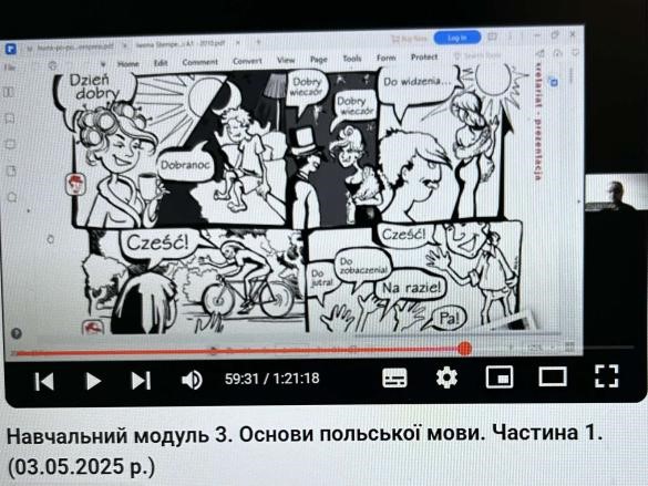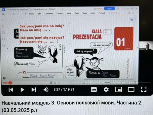 Третій навчальний модуль міжнародного стажування був повністю присвячений основам польської мови для міжнародного спілкування. Заняття проводив Василь ОЛІЙНИК, представник Європейської асоціації інноваційної освіти. Учасники взяли участь в інтенсивних практичних сесіях, спрямованих на розвиток базових комунікативних навичок, необхідних для повсякденного і професійного спілкування польською мовою. Завдяки такому підходу слухачі модуля змогли зануритися в мовне середовище, підвищити рівень впевненості у використанні мови та сформувати основу для подальшого вдосконалення комунікаційних компетенцій.