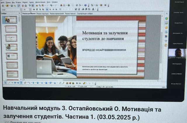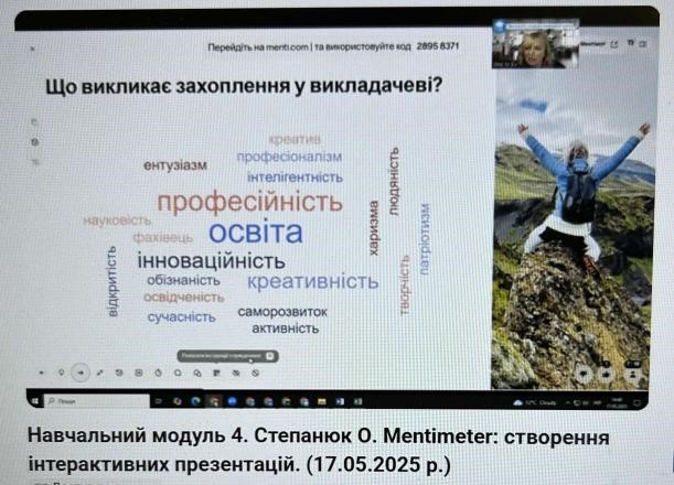 Друга частина дня була присвячена трендовим методикам викладання, таким як кейси, фліп-уроки, гейміфікація та змішане навчання, а також презентації основних цифрових інструментів — систем управління навчанням (LMS), інструментів оцінювання та вебінарних платформ. Завершився модуль етапом зворотного зв'язку, де учасники поділилися своїми очікуваннями та обговорили можливі проблеми, що дало цінну інформацію для подальшого вдосконалення програми стажування.