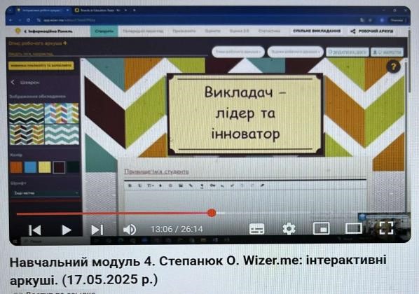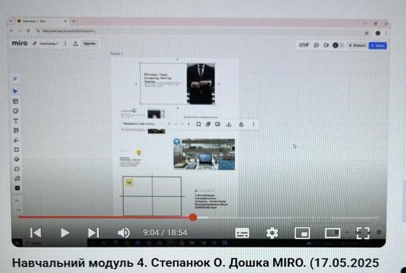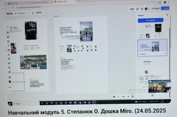 Далі, у рамках цього ж модуля, відбулось знайомство з різноманітними навчальними ресурсами, що значно розширюють можливості викладачів. Були розглянуті такі платформи, як Miro, LiveWorkSheets, Kahoot та WizerMe. Ці інструменти надають широкі можливості для гейміфікації, інтерактивного тестування та створення захоплюючих завдань, що сприяє активному залученню студентів до навчального процесу.