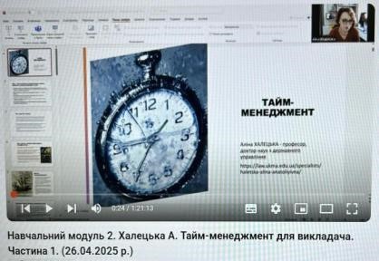 Після офіційного вітального слова від організаторів, професор Аліна ХАЛЕЦЬКА, доктор наук з державного управління, представниця кафедри "Києво-Могилянська школа врядування імені Андрія Мелешевича", провела змістовну сесію на тему тайм-менеджменту. Захід продовжився обговоренням актуальних викликів, з якими стикаються заклади вищої освіти в Україні та Польщі. Дискусія сприяла виявленню спільних проблемних зон та визначенню напрямів можливої співпраці в контексті цифрової трансформації освітнього процесу.