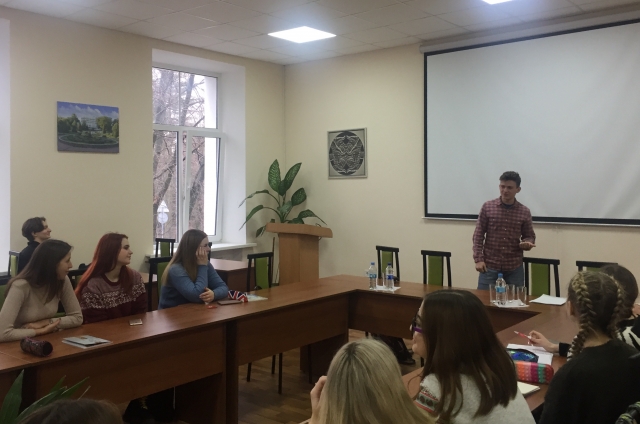 13 січня у нас, студентів 1-го курсу спеціальності “Філологія” відбулася зустріч з Габріелем Пімслером, випускником коледжу Франкліна і Маршалла за спеціальністю «Політолоія» та стипендіатом програми Фулбрайт (США).