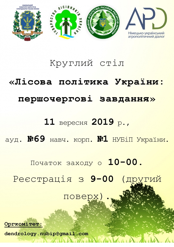 Круглий стіл «Лісова політика України: першочергові завдання» Порядок денний круглого столу «Лісова політика України: першочергові завдання» 11 вересня 2019 року 03:00 - 03:00
