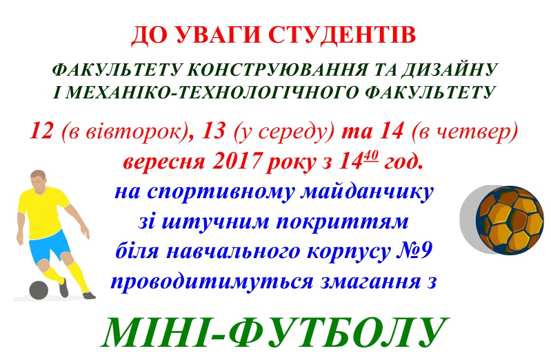 Кубок інженерно-технічних факультетів з міні-футболу 2017-2018 н.р. (регламент змагань - проект)