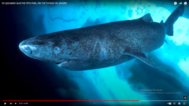 16. Однією з найбільш флегматичних риб є гренландська полярна акула. Її швидкість під час плавання не перевищує 2 км/год.