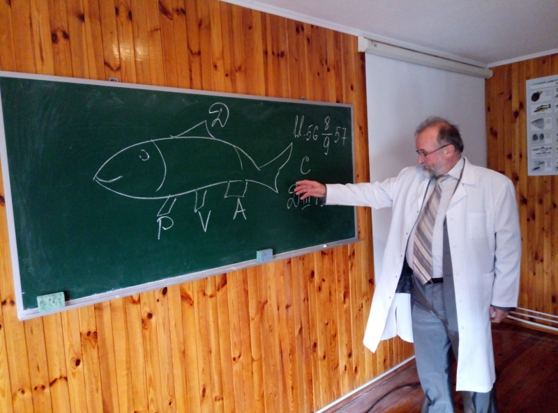 Заняття розпочалося зі вступного слова завідувача кафедри щодо необхідності та важливості правильного визначення видового складу риб та проведення морфометричного аналізу особин різних видів у іхтіології та рибництві, а також особливостях його застосування на різних етапах технологічних процесів у ризничих господарствах.