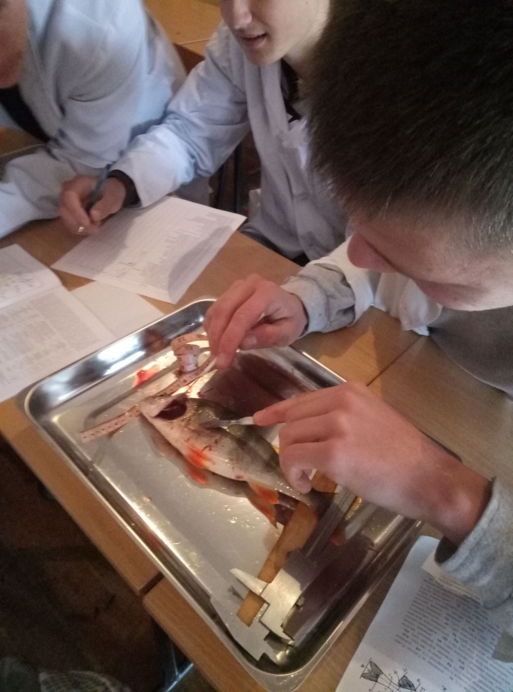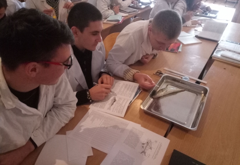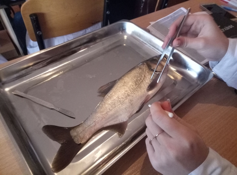 Першим кроком було визначення видів за зовнішніми морфологічними ознаками риб, другим – проведення необхідних обмірів та опрацювання результатів, що зайняло основну частину робочого часу, наприкінці заняття – проведено експрес-контроль засвоєного матеріалу. Під час заняття студенти проявили високий рівень володіння теоретичним матеріалом, що допомогло їм на практиці справитись з усіма поставленими завданнями.
