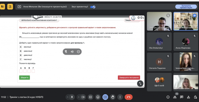 Учасники онлайн-тренінгу проявили неабияку активність і енергію, вступаючи в жваві дебати, аргументуючи свої позиції та розкриваючи суть різноманітних завдань. Через це тренінг став не просто навчальним заходом, а справжнім полем для розвитку логічного мислення та навичок аргументації.