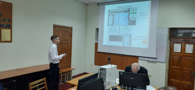 Деркач Олексій виконав роботу на тему «Дослідження та вдосконалення комп’ютерно-інтегрованої системи керування температурою у камері охолодження напівфабрикатів із використанням комплексу технічних засобів ОВЕН» з розробкою моделі камери охолодження напівфабрикатів, керівник доцент Алла Дудник.