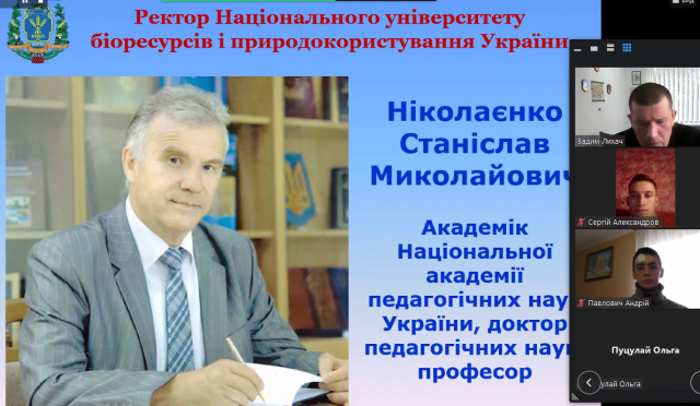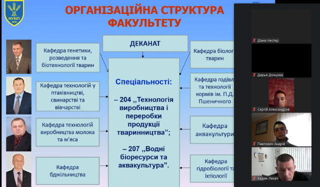 Потім Руслан Володимирович у своїй доповіді та у представленому презентаційному матеріалі детально розповів про прийдешню 125 річницю створення і становлення НУБіП України (надав інформацію про перелік спеціальностей та рейтинг університету серед закладів вищої освіти України), познайомив із ректором НУБіП України – доктором педагогічних наук, професором, академіком Національної Академії педагогічних наук України Станіславом НІКОЛАЄНКОМ, структурою і підрозділами Університету та організаційною структуру факультету тваринництва та водних біоресурсів.