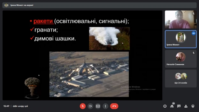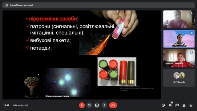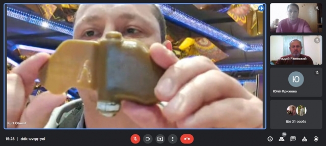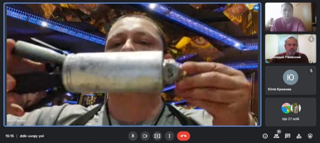 До заключного слова приєднався Геннадій Ржевський, який висловив щиру подяку за проведений просвітницький захід, наголосив, що тема, яка обговорювалася, як ніколи є актуальною і всім ми маємо пам’ятати, що однією з основних причин нещасних випадків із вибуховими пристроями є грубе порушення елементарних правил безпеки. Тому слід приділяти значну увагу формуванню знань у студентів, викладачів щодо поведінки в різних ситуаціях. Завдяки таким фахівцям з великої літери, як Михайло, ми розуміємо, як чинити в надзвичайних ситуаціях, в яких ми зараз опинилися, задля збереження найціннішого – життя. Також Геннадій Ржевський побажав всім присутнім здоров’я, злагоди, взаєморозуміння, душевного, психологічного спокою та достатку. Висловив слова підтримки і подяки територіальній обороні і Збройним силам України за натхненну і самовіддану працю, за непохитну віру у наше спільне щасливе майбутнє і пришвидшення перемоги. Наголосив, що зараз необхідні усі зусилля для перемоги над ворогом, тому потрібно допомагати нашим ЗСУ будь-яким доступних способом: їжею, одягом, обмундируванням, фінансами, фізично, інформаційно та маємо слідкувати за офіційною сторінкою ЗСУ і не довіряти фейкам, не панікувати, ми всі разом обов’язково переможемо.