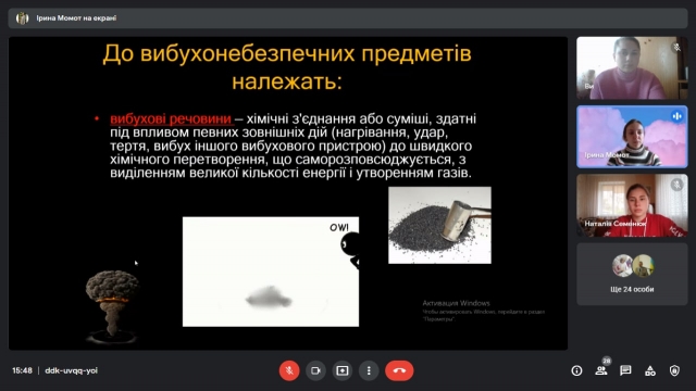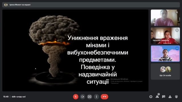 До актуальної тематики, яка цікавить зараз всіх українців активно доєдналися студенти факультету харчових технологій та управління якістю продукції АПК, а саме Ірина Момот і Наталія Семенюк, і підготували доповідь із цікавою презентацією-інструкцією, як уникнути враження мінами і вибухонебезпечними предметами, поведінки у надзвичайній ситуації.