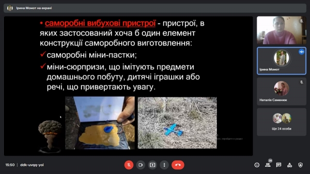 Також сапер з досвідом зазначив, що натрапити на небезпечну «іграшку» можна практично скрізь: у лісі, у старому окопі, на свіжозораному полі, на власному городі й навіть на вулицях міст. І якщо вибухові пристрої серійного зразка легко розпізнати за зовнішнім виглядом і діяти відповідно до ситуації, то саморобну вибухівку, що може з’явитися на вулицях міст і селищ, розпізнати набагато складніше. Також гість розповів, що ДСНС обстежує території, де велися активні бойові дії. Рятувальники Київської області вилучають кожного дня вибухонебезпечні предмети у містах Ірпінь, Буча і Гостомель та отримають кожного дня від 2500 до 4000 дзвінків-повідомлень про виявлення небезпечних предметів. Основною рекомендацією фахівця є: якщо Ви опинилися поблизу вибуху, стримайте свою цікавість і не намагайтеся наблизитись до епіцентру, щоб подивитись або допомогти рятівникам. Найкраще, що Ви можете зробити – залишити небезпечне місце і повідомити всім про небезпечну ситуацію.