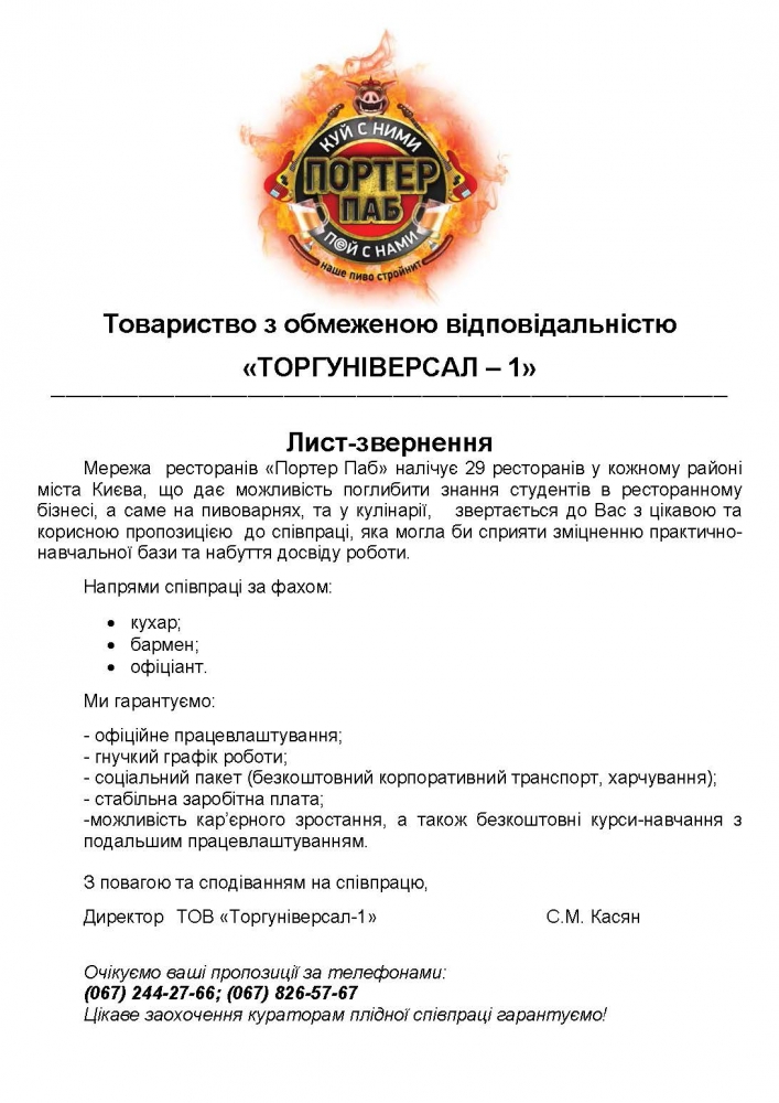 Мережа ресторанів «Портер Паб» дає можливість поглибити знання студентів в ресторанному бізнесі та у кулінарії 14 лютого 2017 року 02:00 - 02:00