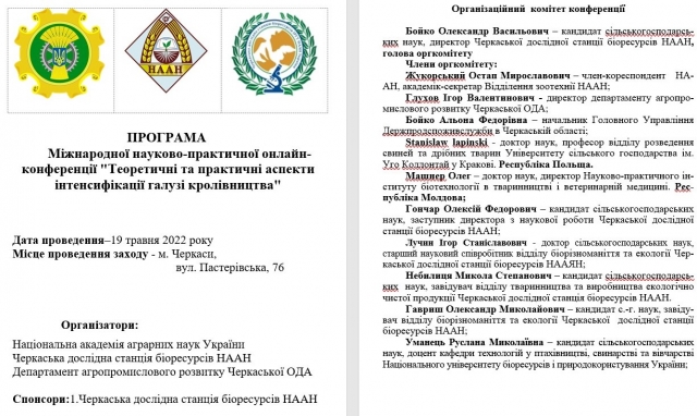 Міжнародна науково-практична онлайн-конференція “Теоретичні та практичні аспекти інтенсифікації галузі кролівництва”