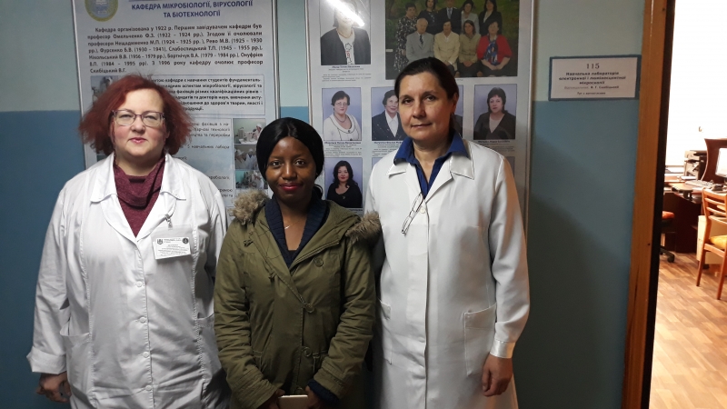 Недавній візит доктора біологічних наук, професора, академіка НААН України Сахацького Миколи Івановича на кафедру мікробіології, вірусології та біотехнології продовжився науковою співпрацею мікробіологів з нашої кафедри - доктора ветеринарних наук, професора Мазур Тетяни Василівни, доктора ветеринарних наук, професора Яблонської Оксани Валентинівни, кандидата ветеринарних наук, доцента Мельник Марії Василівни та колеги з Нігерії, PhD аспіранта Марі Макінде.