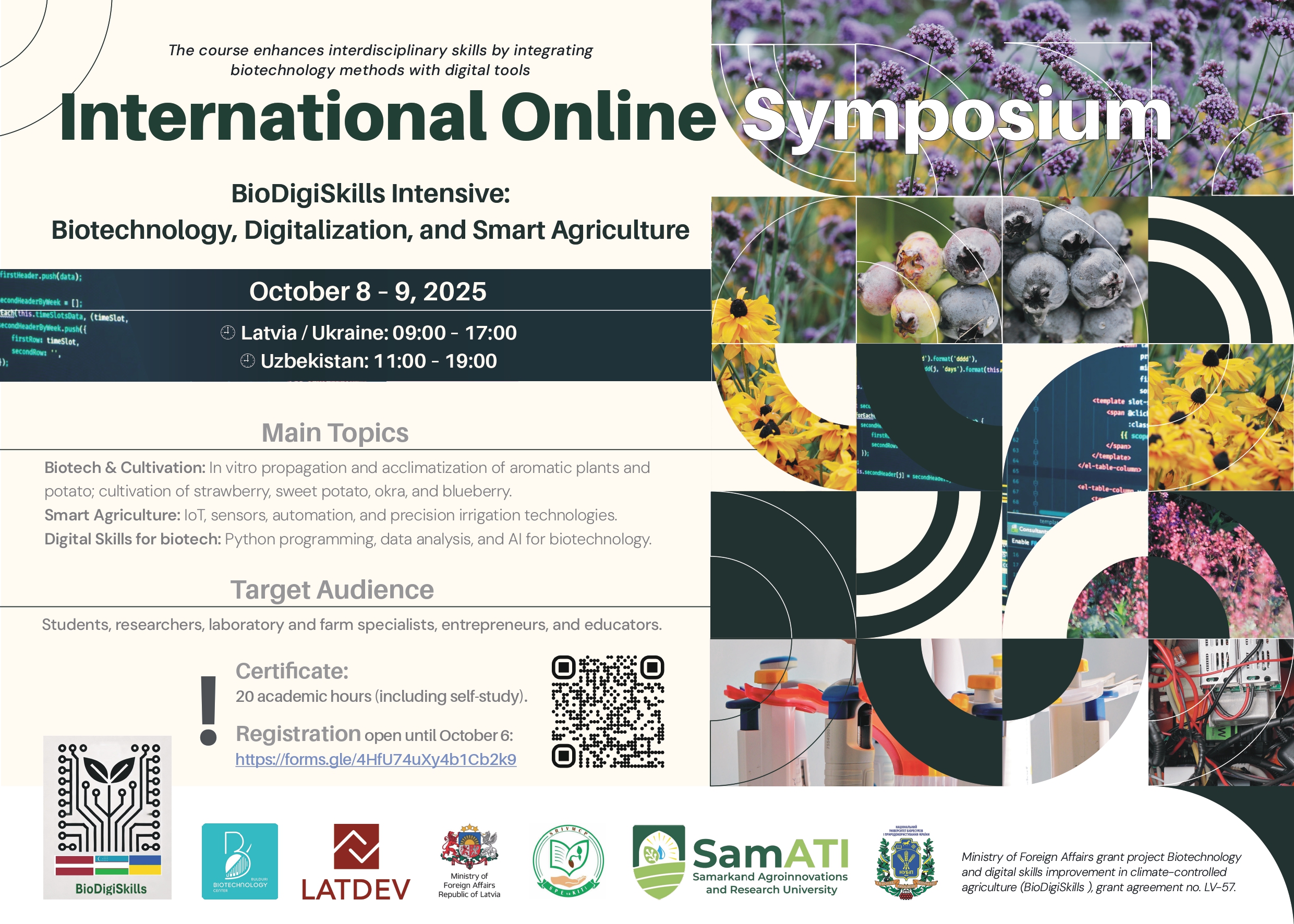 Міжнародний онлайн-симпозіум BioDigiSkills Intensive: Біотехнології, цифровізація та розумне сільське господарство