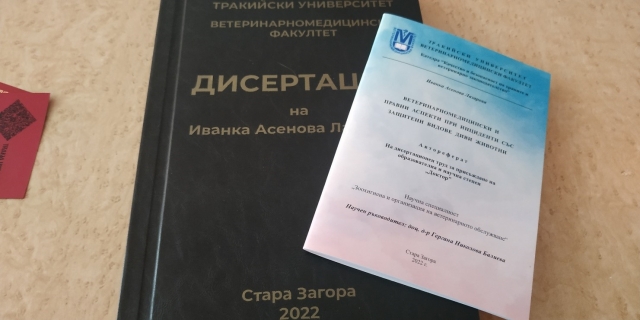 Під час візиту Кучерук Марії до факультету ветеринарної медицини Тракійського університету її було запрошено у якості гостя на захист дисертаційної роботи на здобуття ступеня PhD здобувача кафедри якості й безпеки харчових продуктів та ветеринарного законодавства Іванки Асенової Лазарової.