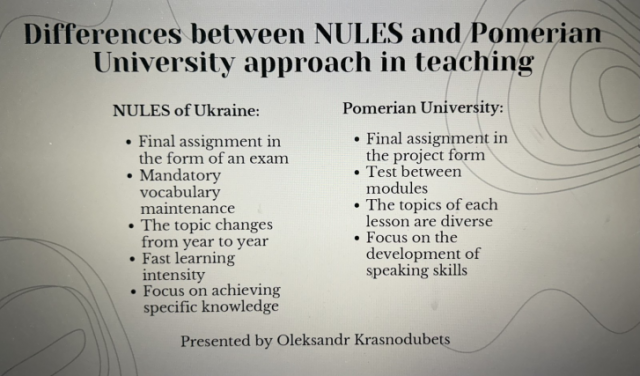 Хочемо зазначити, що основна мета кафедри англійської філології полягає в тому, щоб створити таке студентсько-центристське освітнє середовище, яке надасть можливості особистісного зростання кожному учасникові освітнього процесу. Отже, значна увага під час вебінару приділялася доповідям студентів НУБіП різних факультетів, які навчаються за програмами подвійних дипломів та програмою Erasmus+, оскільки ми, як викладачі, які забезпечували чи й зараз забезпечуємо викладання англійської мови даним студентам, є свідками їхнього мовного розвитку і досягнень, які вони мають, завдячуючи ґрунтовним знанням з англійської мови.