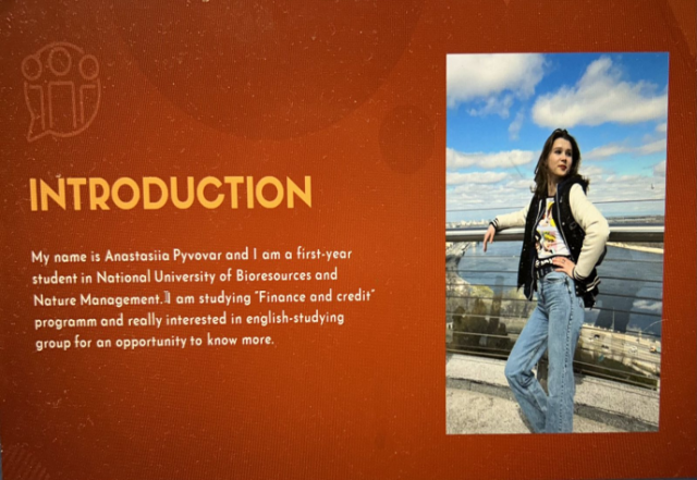 Виступ Вікторії КРИВЦУН був цікавим та надихаючим. Вона є відмінницею навчання та активно бере участь в студентському житті. Студентка продемонструвала, що завдяки наполегливій праці та самовіддачі можна досягти значних успіхів у вивченні англійської мови та відкрити для себе нові можливості у житті.
