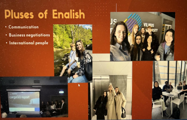 Анастасія ПИВОВАР, студентка 1 курсу 4 групи спеціальності "Корпоративні фінанси" економічного факультету, захопила учасників вебінару розповіддю про свій досвід вивчення англійської мови в Бізнес-школі у Вільнюсі, Литва.