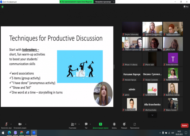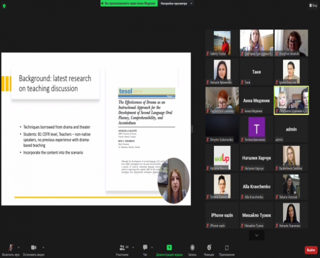 Доповіді спікерів викликали жваве обговорення серед учасників вебінару, які мали можливість поставити питання спікерам та поділитися своїм досвідом викладання англійської мови.