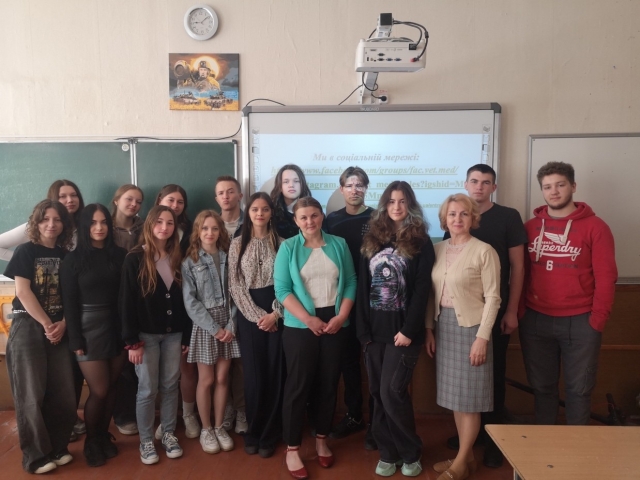 У середу, 1 травня 2024 року, доцент кафедри хірургії і патофізіології ім. акад. І.О. Поваженка Куліда Марія Анатоліївна провела профорієнтаційну роботу серед учнів одинадцятого класу Димерського ліцею №2 Димерської селищної ради Вишгородського району Київської області.
