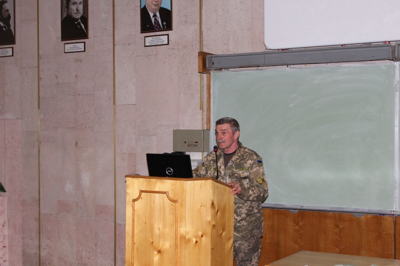 Заступник завідувача військової кафедри полковник Радченко Анатолій Миколайович ознайомив присутніх з можливістю вступу за спеціалізацію «Ветеринарне забезпечення Збройних Сил України» і отримання військового звання лейтенанта. До речі, у 2018 році фіксоване державне замовлення за цією спеціалізацією становить 32 особи.