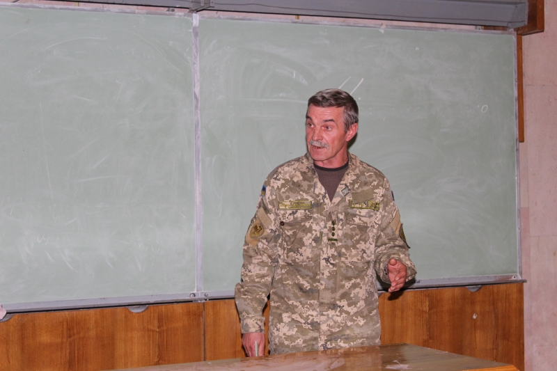 Заступник завідувача кафедри військової підготовки, полковник Анатолій Радченко (випускник цього ж факультету) ознайомив присутніх з можливістю вступу за спеціалізацією «Ветеринарне забезпечення Збройних сил України» і отримання військового звання лейтенант, оскільки за даною спеціалізацією є окреме державне замовлення і, до речі, у 2018 році воно складало 32 особи.