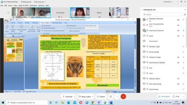 На факультеті тваринництва та водних біоресурсів значна увага приділяється розвитку наукової складової освітнього процесу. Саме тому 23 листопада протягом дня результати своїх наукових досліджень представили магістри 2 року навчання зі спеціальностей «Технологія виробництва і переробки продукції тваринництва» та «Водні біоресурси та аквакультура» під час проведення постерної он-лайн конференції на платформі CiscoWebex.