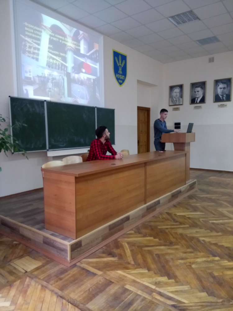 Голова студентської ради гуртожитку студент 4 курсу Олександр Дєманов у своїй презентації і доповіді наголосив на діяльності його колективу і тих позитивних зрушеннях, які відбулися за останній рік у гуртожитку. Він акцентував увагу на покращенні соціально-побутових умов проживання студентів та планів на майбутнє. Студентська рада налаштована рішуче і ті завдання, які ставляться перед нею, він впевнений у цьому навчальному році будуть виконані.