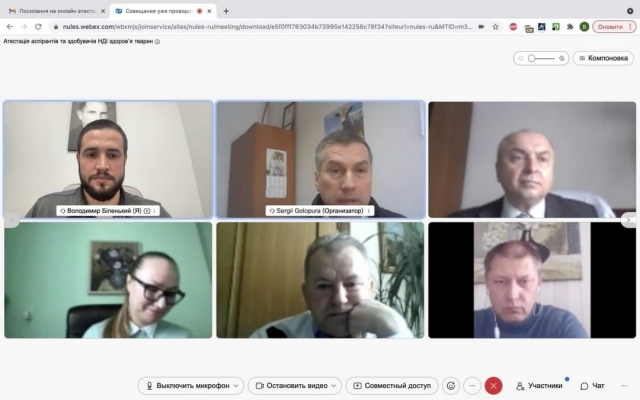 Атестаційна комісія у складі: голова комісії – директор НДІ здоров’я тварин д.вет.н., доцент Сергій Голопура, декан факультету ветеринарної медицини д.б.н., професор Микола Цвіліховський, члени комісії, гаранти програм: д. вет. н., доцент Наталія Грушанська, д.вет.н., доцент Марина Галат, д.вет. н., професор Ольга Якубчак, а також члени комісії д.вет.н., професор Дмитро Засєкін, д.вет.н., професор Віталій Недосєков, д.вет.,н., професор Володимир Духницький, к.вет.н., доцент Тетяна Немова заслухали звіти аспірантів і здобувачів та оцінили їх здобутки.