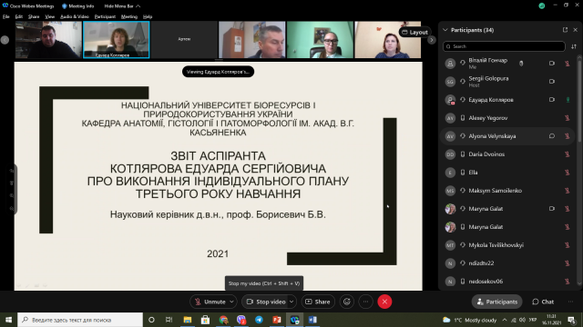 Згідно наказу ректора НУБіП України №1156 від 27.10.2021 року, 16 листопада 2021 року в онлайн-режимі відбулася атестація аспірантів та здобувачів 1-4 років навчання за освітньо-науковими програмами підготовки доктора філософії зі спеціальностей 211 – «Ветеринарна медицина», 212 – «Ветеринарна гігієна, санітарія і експертиза» та 091 – «Біологія».