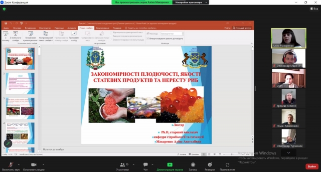 Відповідно до затвердженого графіку проведення відкритих лекцій у весняному семестрі 2022-2023 навчального року на факультеті тваринництва та водних біоресурсів, 16 лютого 2023 року старший викладач кафедри гідробіології та іхтіології Аліна Макаренко провела відкриту лекцію з дисципліни «Динаміка популяцій риб» на тему: «Закономірності плодючості, якості статевих продуктів та нересту риб» для магістрів 1 року навчання спеціальності 207 – «Водні біоресурси та аквакультура».