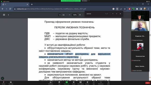 • Окремим елементом було розглянуто положення дотримання академічної доброчесності, які діють в НУБіП України, зокрема порядок перевірки кваліфікаційних робіт на наявність запозичень.