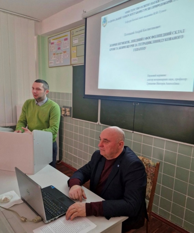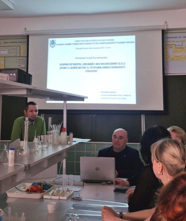 На розширеному засіданні кафедри біохімії імені акад. М.Ф. Гулого НУБіП України представлено наукову доповідь здобувача наукового ступеня доктора філософії Андрія Потоцького про результати виконання дисертаційного дослідження зі спеціальності 211 «Ветерин