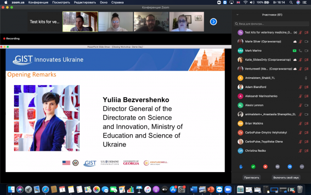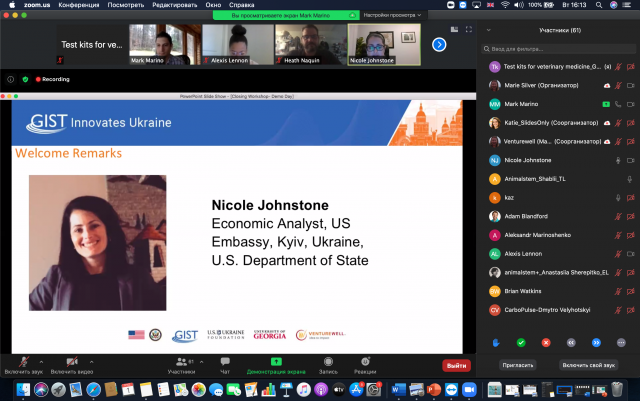 Cпівробітниці факультету ветеринарної медицини на чолі з доцентом Мариною Галат та за участі доцента Олени Семенко і студентки 2 курсу ОС «Магістр» Анни Овчиннікової взяли участь в Міжнародній програмі розвитку інновацій, новаторів, дослідників, підприємців та інноваційних проектів для стартап-команд VentureWell (Сполучені Штати Америки), яка проводилась для новаторів з України – GIST Innovates Ukraine. Ця участь стала можливою, завдячуючи перемозі у конкурсі команд-інноваторів навесні цього року.